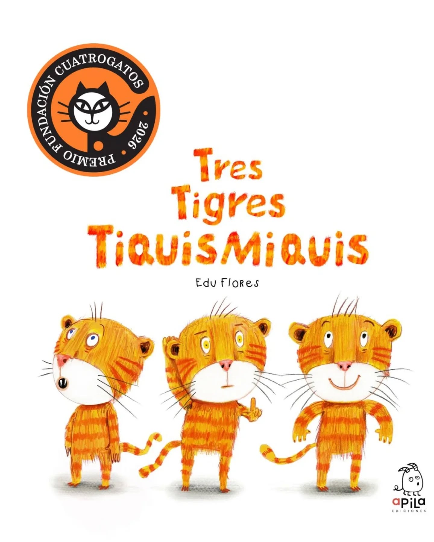 El álbum infantil ilustrado Tres tigres tiquismiquis de Eduardo Flores, publicado por la Apila Ediciones en 2025, acaba de ganar el Premio Cuatrogatos 2026. Este libro fue seleccionado también por la biblioteca Pública de Nueva York entre los mejores libros infantiles en español del 2025.