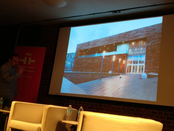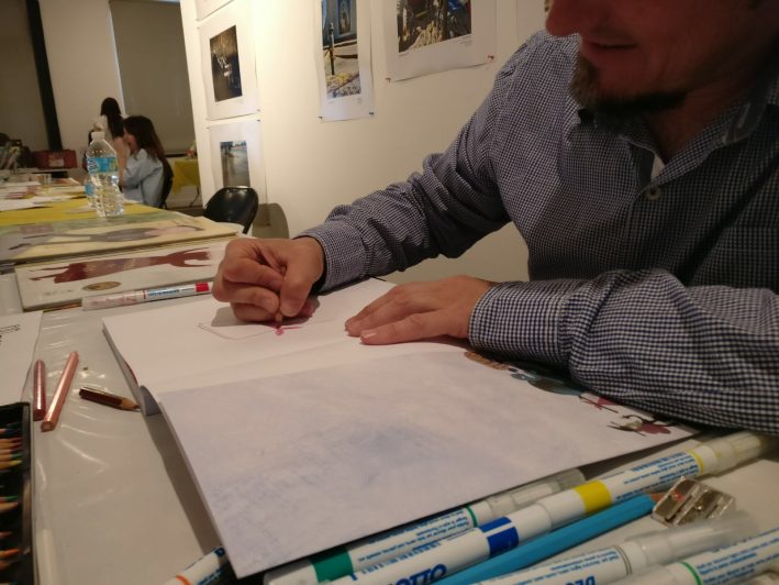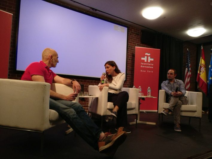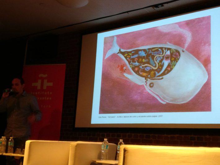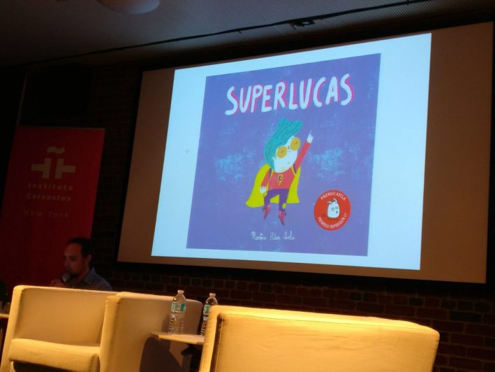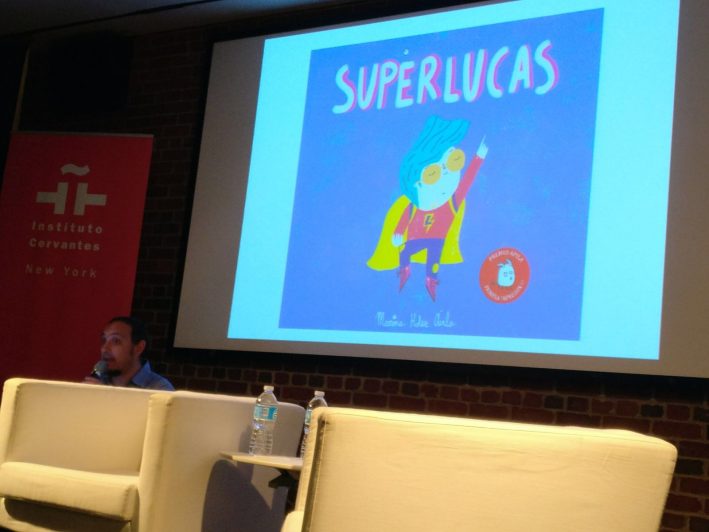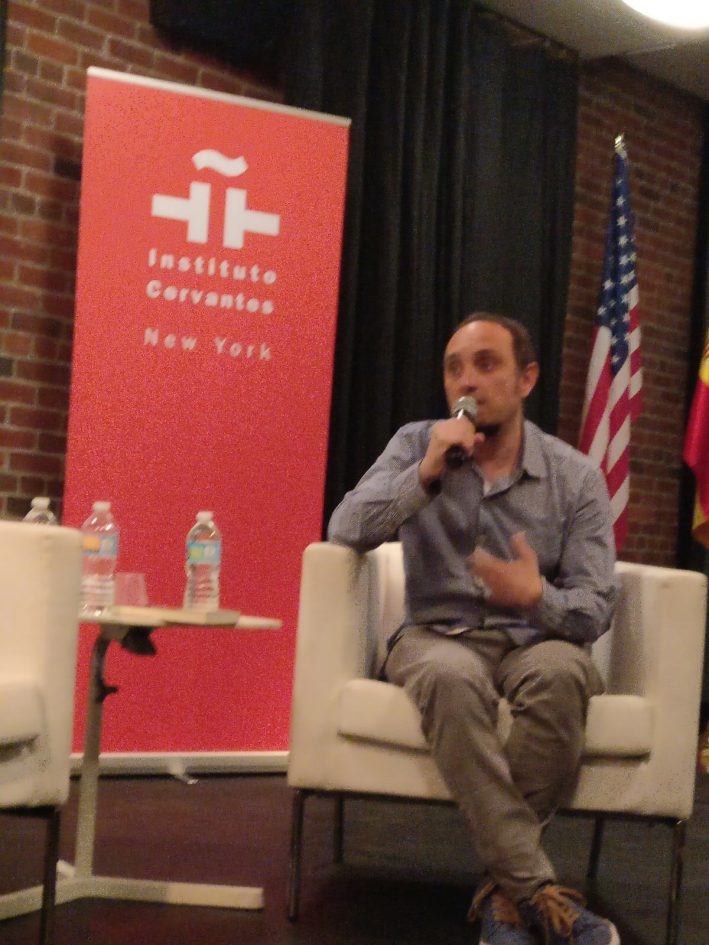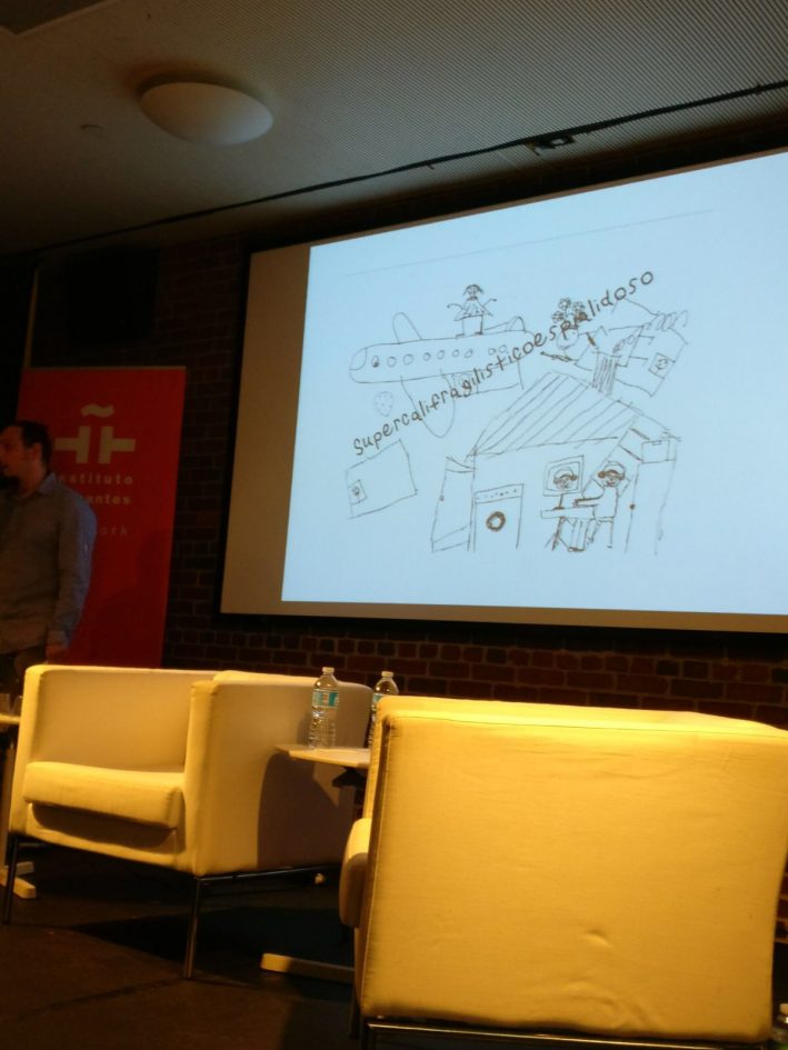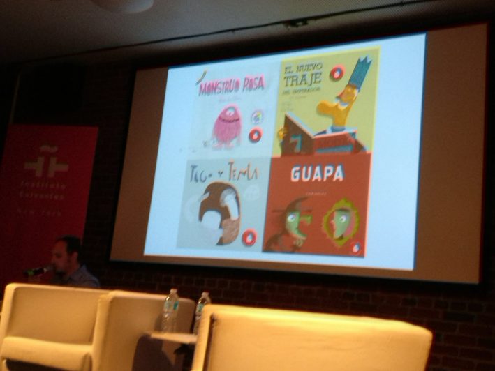 El pasado día 19 de mayo, en el Instituto Cervantes de Nueva York, tuvimos la suerte de compartir unas horas con el escritor Alejandro Palomas, la editora de Flamboyant Eva Jiménez y un nutrido grupo de docentes que imparten clases en centros en los que se usa nuestro idioma. Edu Flores (ilustrador y editor en Apila Ediciones) habló del dibujo, la creatividad y el aprendizaje, relacionado estas cuestiones con su experiencia docente en la Escuela Superior de Diseño de Aragón y su labor profesional en Apila.